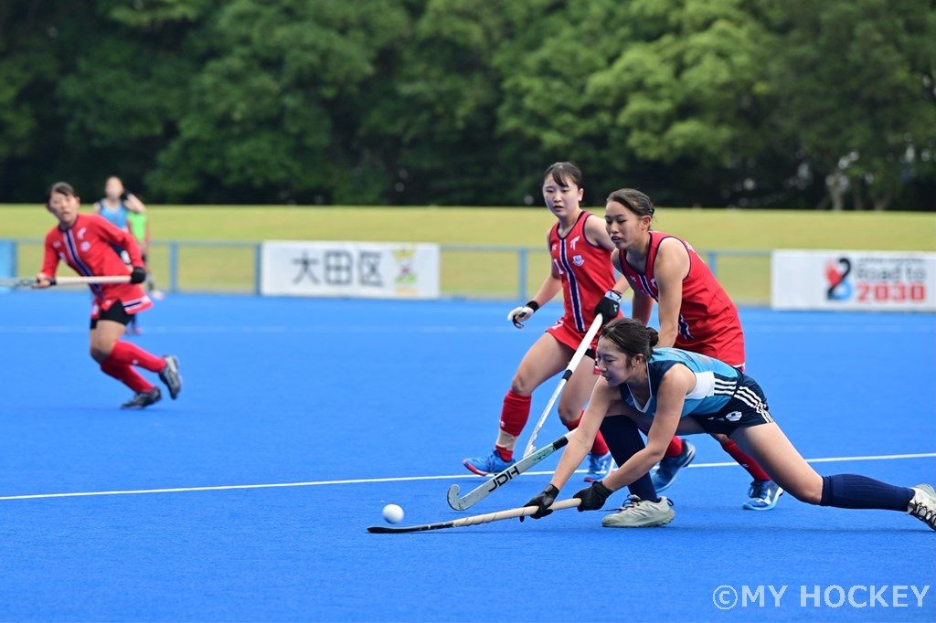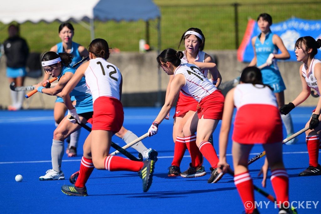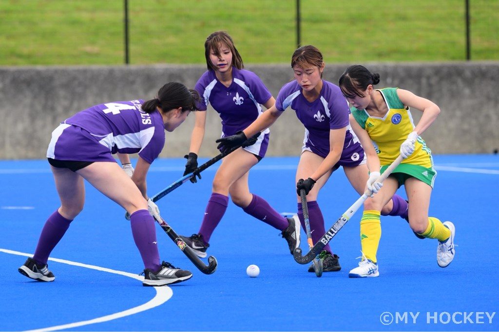 第74回男子・第47回女子全日本学生ホッケー選手権大会(インカレ)は30日、大井ホッケー競技場メインピッチ・サブピッチ(東京都)で女子1回戦が行われ、3連覇を狙う立命館大学が北海道大学に32-0で勝利した。
