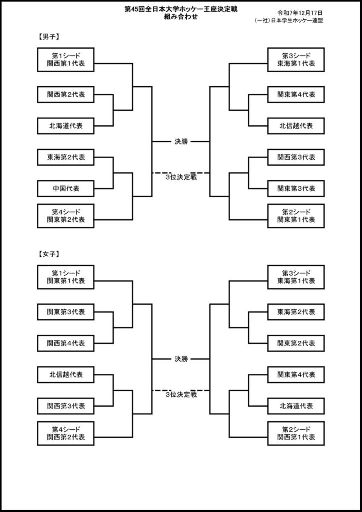 2026年6月25日(木)から6月28日(日)に行われる第45回全日本大学王座決定戦・東西交流戦の組み合わせが決定した。